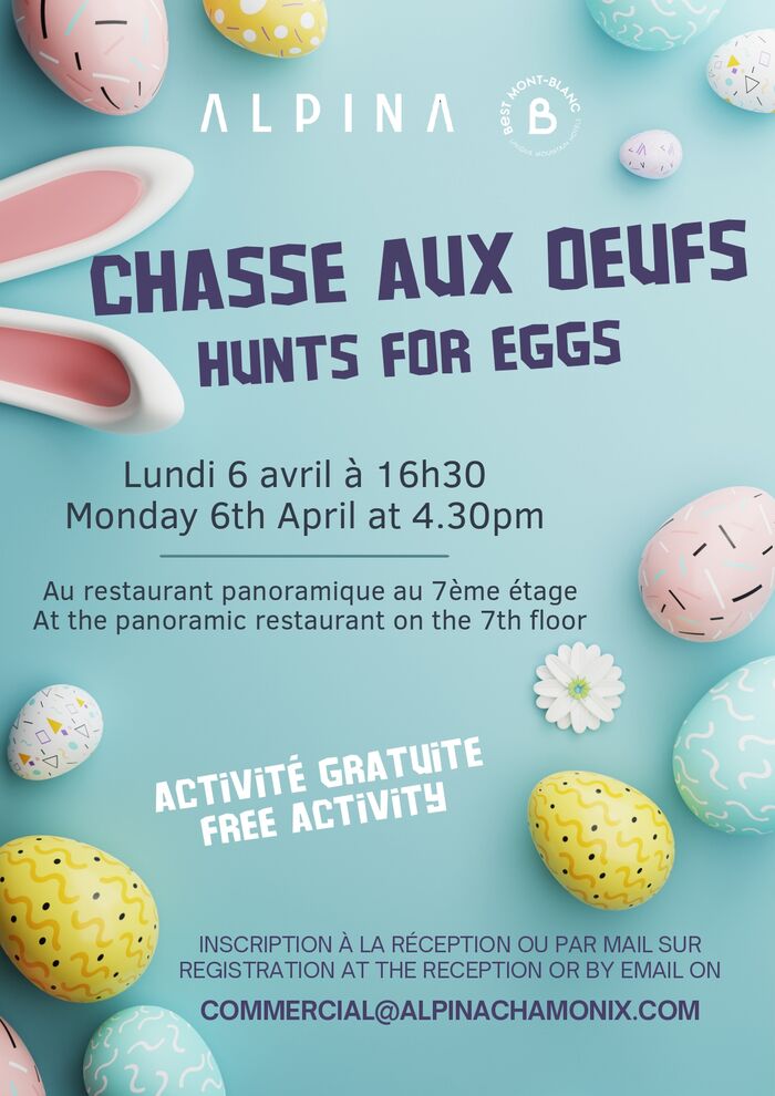 Rendez-vous au 7e étage, au cœur de notre restaurant, dès 16h30 pour une chasse aux œufs gratuite pleine de surprises et de gourmandises. Les enfants pourront partir à l'aventure à la recherche des œufs cachés dans un cadre exceptionnel, avec une vue imprenable sur la ville.